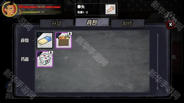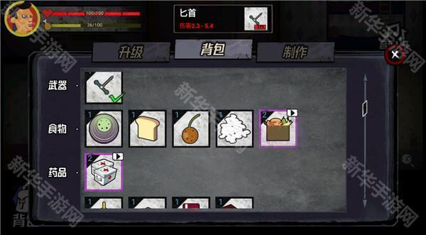 5、在探索过程收集的物品,存放在背包中,可获得食物或是药品等内容。