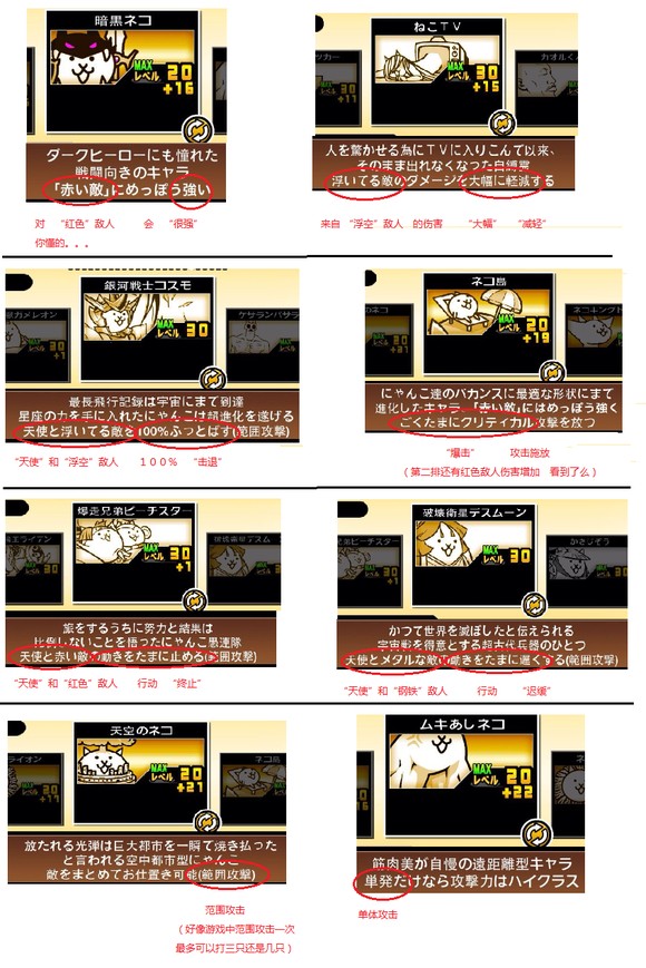 注:有部分喵是不一样的,例如“狂乱类型只能升级20”,还有少数稀有喵只能升级30,以具体情况为准。