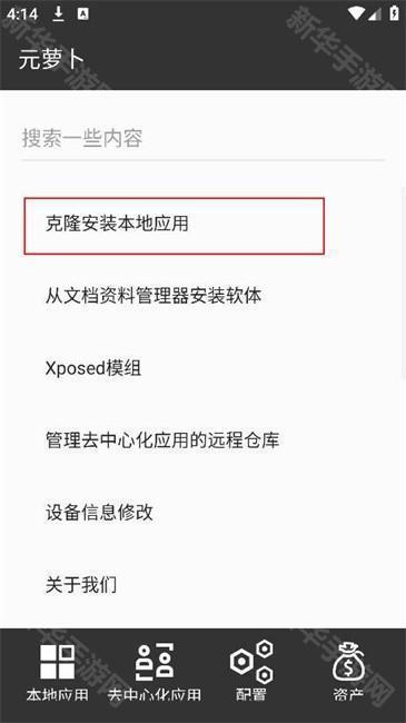 2、在配置页面中,找到并点击【克隆安装本地应用】选项,进入应用列表。