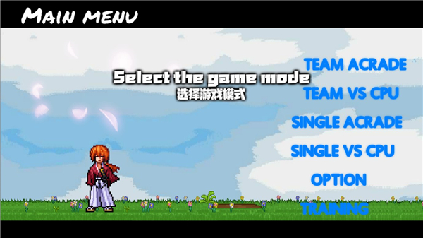 1、打开游戏,点击屏幕即可进入,在这里共有6大选项,默认为英文,可以通过点击选项来设置中文说明,前两个“TEAM”与后两个“SINGLE”的区别是“TEAM”需要玩家选择3名不同的角色,并自由调整角色出场顺序,而“SINGLE”只需要玩家选择一个角色就可以了。这里点击第三个单人闯关模式,再次点击确认。