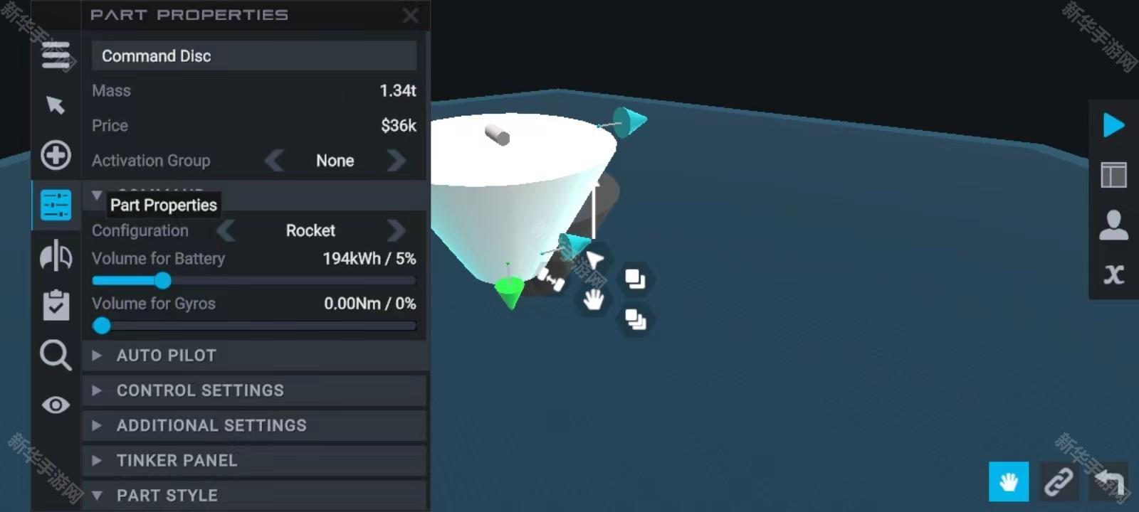 D、TINKER PANEL(修改面板):主要包括Part Scale(大小规模:调整零件大小)、Mass Scale(质量比例:调整零件质量)、Heat Shield(防热罩:调整隔热能力)、Max Temperature(最高温度:可承受的最高温度)、Drag Scale(拖动比例:基本不用管,用处不大)。