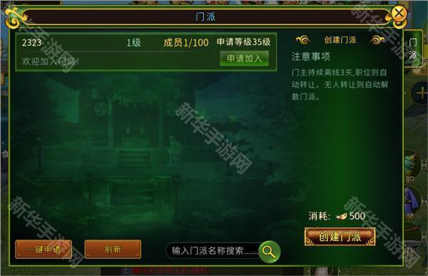 注意:门主持续离线3天,会则自动转让门主职位,如果无人转让则自动解散门派。