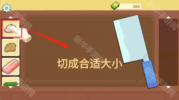 部分食材和配料需要进行简单的改刀,点击相应的食材将其切成合适的大小