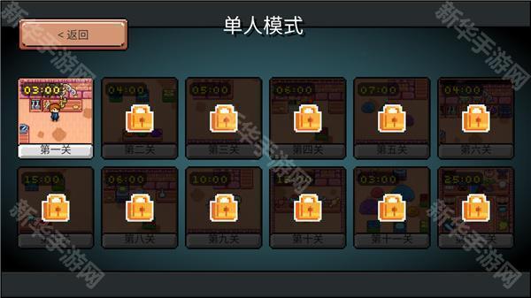 1、单人模式下一共有12个关卡,需要一个一个解锁;