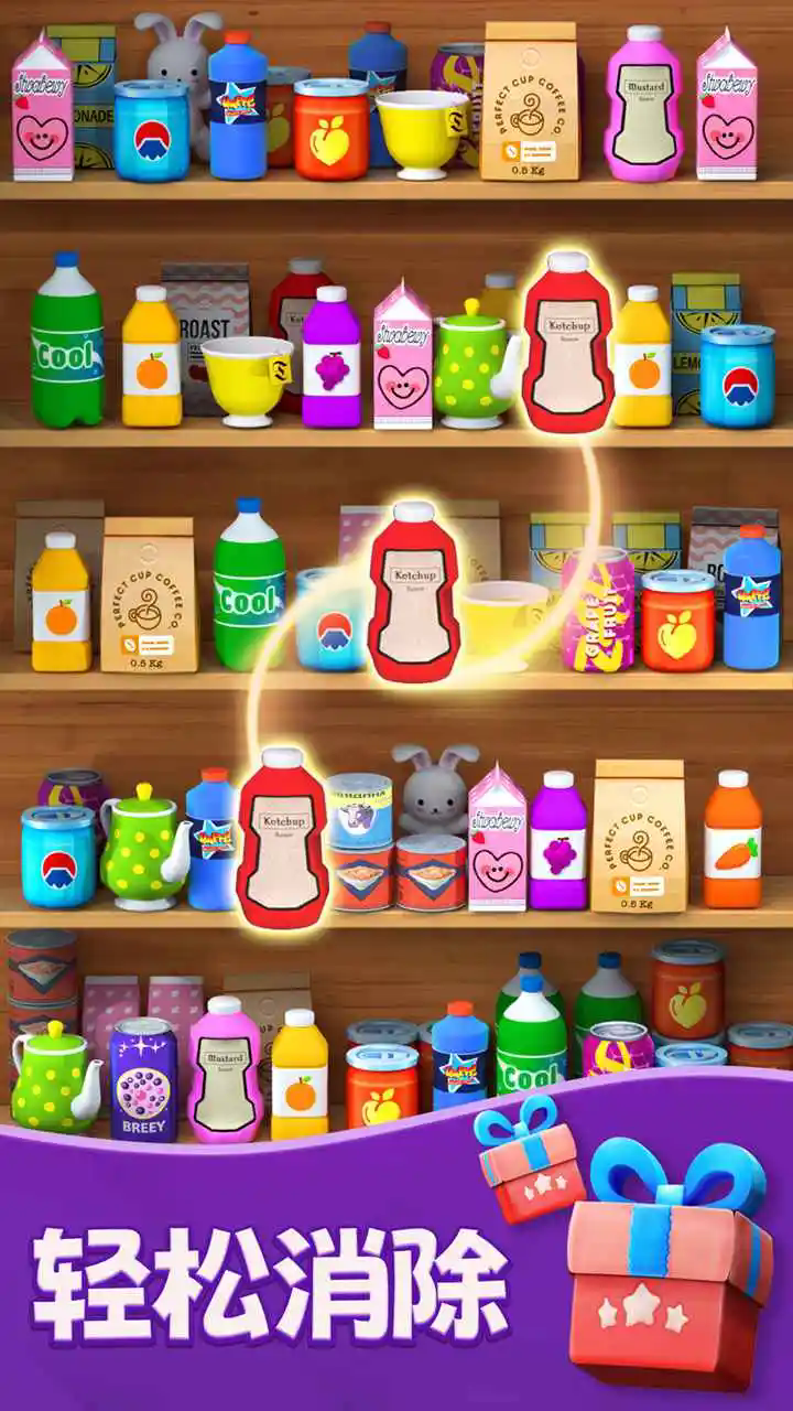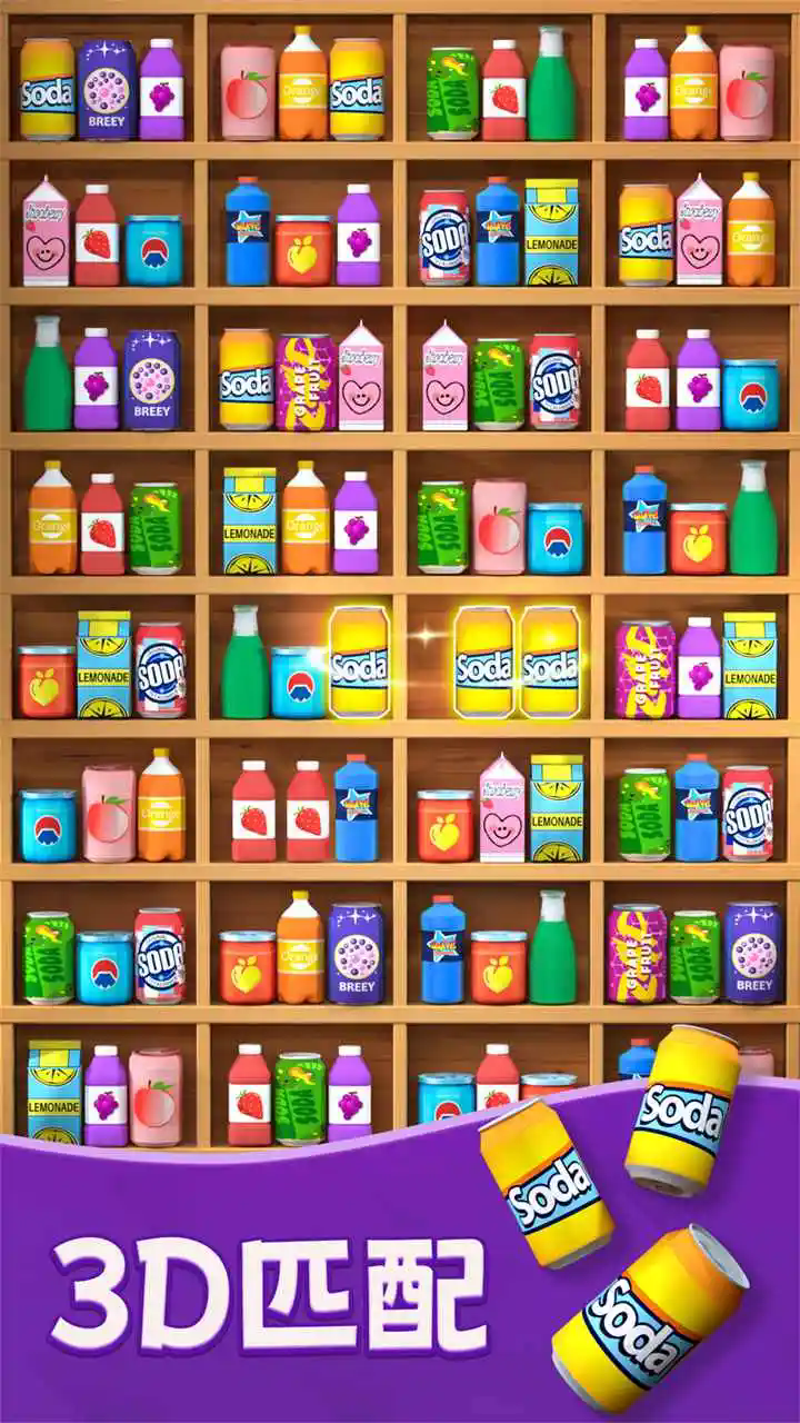 《货柜配对消》这是一款休闲消除类型的游戏,游戏由“千纵越信息技术”制作的游戏,是余款非常解压的分类消消乐类型的游戏,通过将物品移动到同一个架子上,就可以消除相同的物品,3D图像可以让你沉浸其中!有许多道具可供无限使用,游戏玩法不再只是在网格内配对。玩家需要滑动屏幕将三个或更多相同的产品或容器移动到同一货架上,以完成配对和消除。游戏简单有趣,可以轻松缓解玩家的压力,体验快速愉快的游戏体验。
