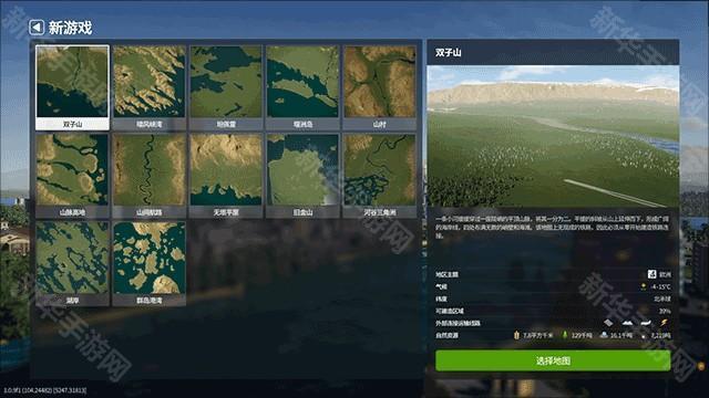 山村地图不建议新手玩家选择,此地图只有21%的区域可以建造房屋,并且气候非常寒冷,也没有海运连接,但可用于建设的自然资源比较充足。