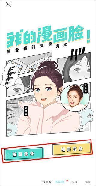 2、进入我的漫画脸页面后,我们可以按照自己的需求选择“拍照变身”或“相册变身”;