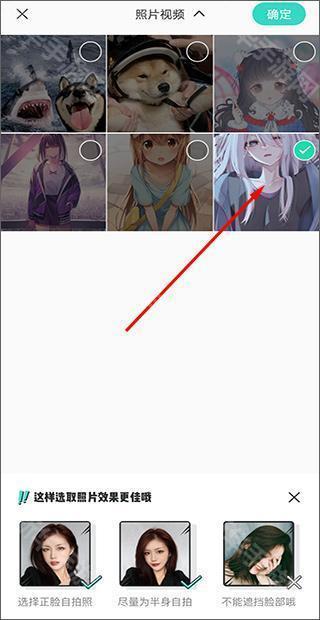 3、小编就以“相册变身”为例,进入相册后选择一张想要变身的照片,尽量选择半身自拍、正脸自拍照哦,这样选取图片效果更佳,而且不能遮挡脸部哦,不然系统会识别不出人像无法生成漫画脸;