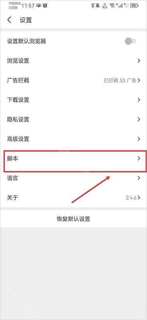 3、在设置页面,找到脚本功能并点击