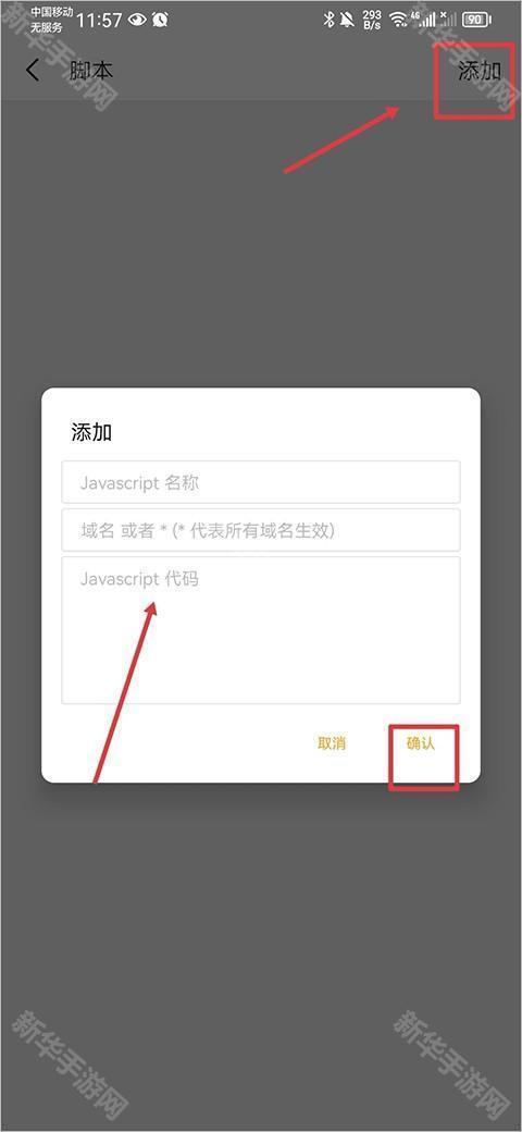 4、点击添加,将脚本代码复制到方框内即可