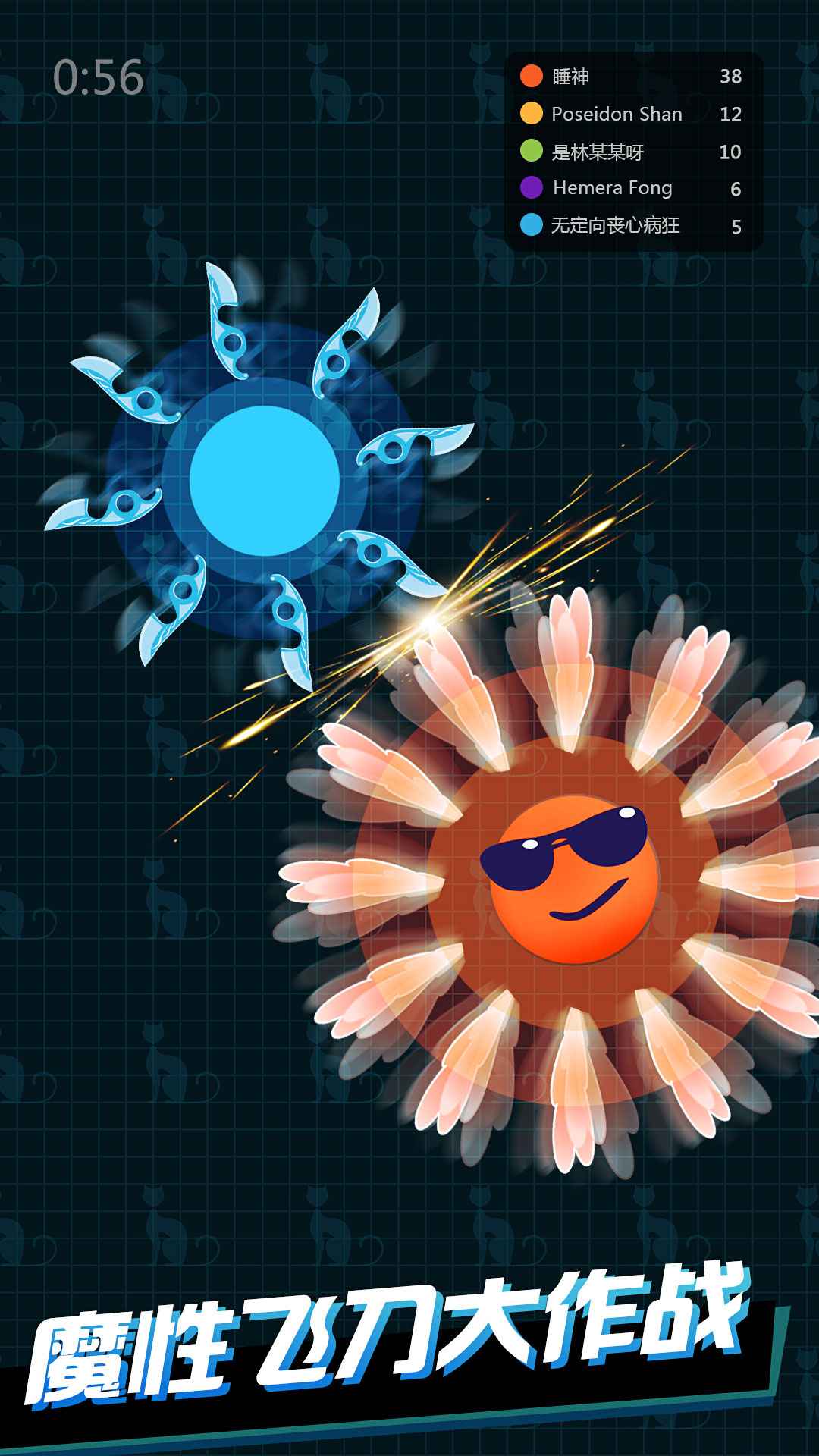 1、游戏将io游戏与飞刀元素相结合,创造出独特的飞刀混战玩法。