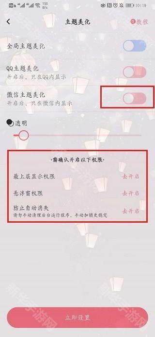 4、点击一张喜欢的图片,将微信主题美化开关打开