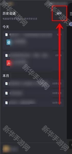 2、进入历史会话页面后,点击右上角的【编辑】。