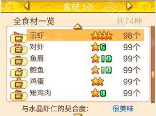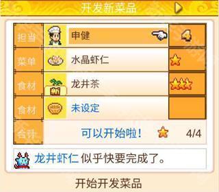 ● 值得注意的是当食材契合度显示“完美”时,可能开发出新的菜品。