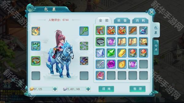 《大话许仙》游戏设计了人性化的储存系统,主要有背包系统,仓库系统和临时背包系统,下面带大家认识一下。点击游戏主界面右下角的道具按钮,可以进入游戏的背包界面。背包初始开发50个格子,玩家可以消费银币开启背包格子,最高可以额外开启200个背包格子,巨大的容量让你不必担心不够用。背包还额外增加了装备栏和消耗品栏,可以快速分类物品。使用整理功能可以快速对背包里杂乱的物品进行排序,大部分消耗品还可以叠加在一起,让背包更加简洁高效。