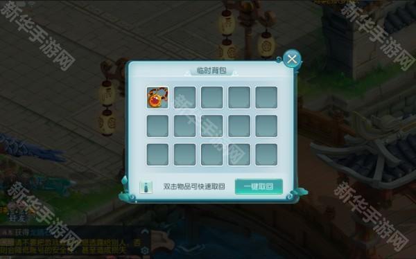 如何取回临时背包中的道具?在背包中有充足的空格后,在临时背包界面点击一键取回按钮即可取回临时背包中的道具