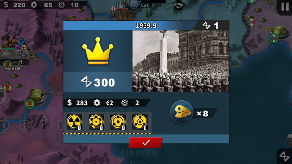 2、合理布置军队,进行行动,研究新的科技,解锁各种地标建筑,提高各个部队的战斗力。