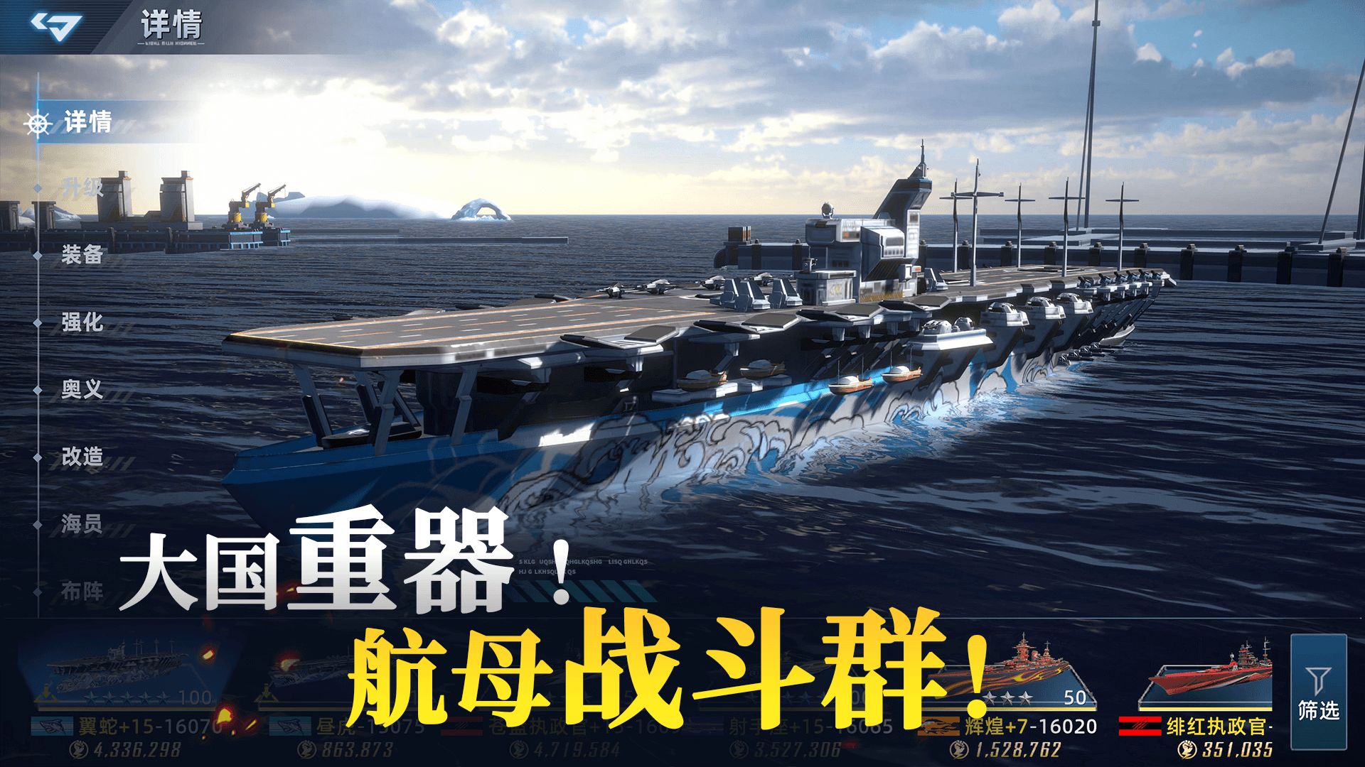 2、玩家可以打造属于自己的舰队,包括多种类型的舰船和飞机,并对它们进行装备和人员配置。