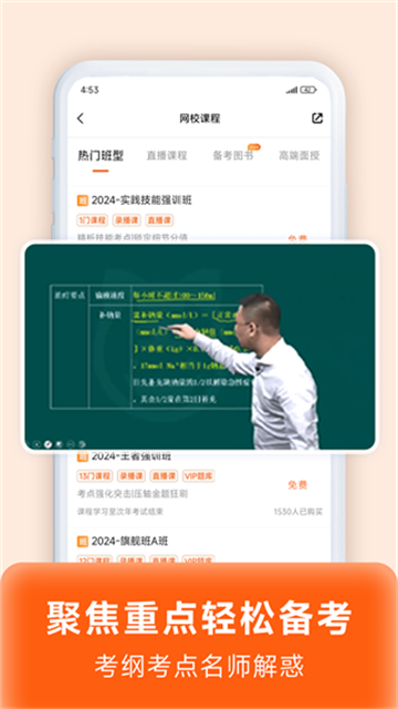 3、资深讲师为您制定有效的复习计划,实时直播互动学习,不同直播班级针对性强化你的考试薄弱环节。