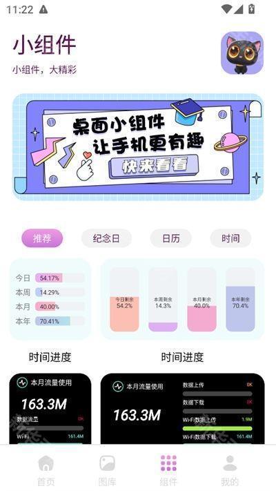 4、点击组件页面,包含了纪念日、日历以及时间等组件样式。