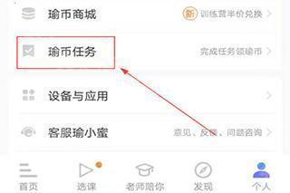 1、在用户每天第一次登录每日瑜伽官方安卓版app的时候,软件都会自动提示用户去完成打卡任务,如果你错过了提示,可以进入到“我的”个人信息设置界面,选择点击“瑜币任务”。