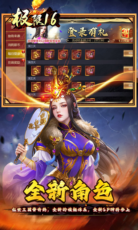【极限16(0.05折三国暴爽版)】这是一款三国角色扮演类型的游戏,游戏由“宿州手游”公司出品,这个版本为0.05折扣版本,让玩家体验最简单的游戏玩法。你可以建造宏伟的城市,保卫你的家园,并与盟友合作建立最强大的国家,结合战略布局和布局游戏。即使离线,你也可以升级你的角色,体验丰富的战斗模式,轻松管理你的领土和资源,成为最强的三国主公,喜欢的快来试试看吧。