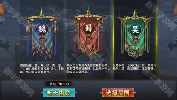 1、玩家进入游戏后就可以选择自己的阵营啦,也可以随机选择阵营,额外获得1000元宝奖励。