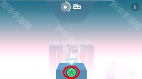 在游戏中出现图中标记的绿色圆盘时,用弹球击中即可进入无敌模式,可以一直按住屏幕发射出无数的球。
