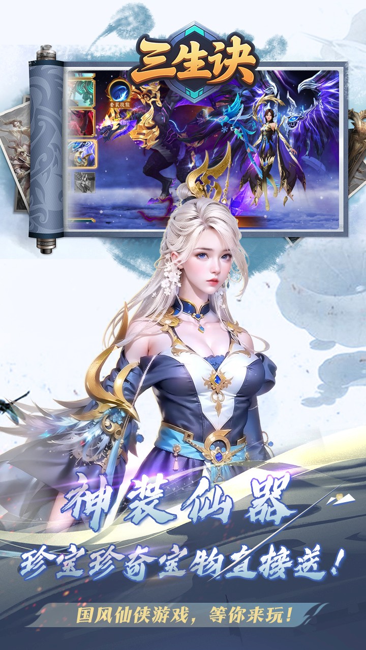 【三生诀0.1折】这个游戏是角色扮演类型的游戏,游戏由“天海网络”工作室出品,这款游戏是0.1折扣服,让玩家轻轻松松获得游戏的所有角色,以东方神话为基础,构建了一个云雾缭绕、精神血脉交织的神秘世界,亲身体验惊险刺激的冒险故事,通过免费交易系统享受无限PK,现在每天免费获得幸运包和金锭等稀有物品。在蓬莱幻境中探秘天道,在不周山顶直面内心的恶魔。