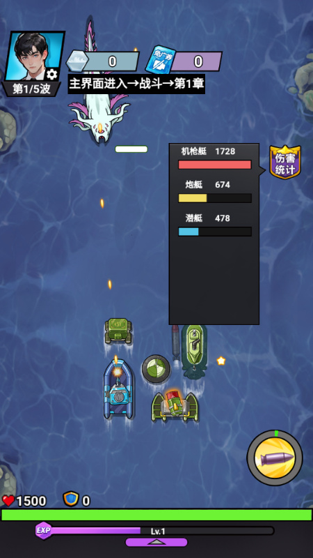 游戏的关卡难度不同,玩家前面通关之后,后面的关卡的难度会提升,但你的战舰也能得到升级,两个一样的一级战舰合成在一起就能变成二级战舰,变得更加强大,喜欢的快来试试看吧。
