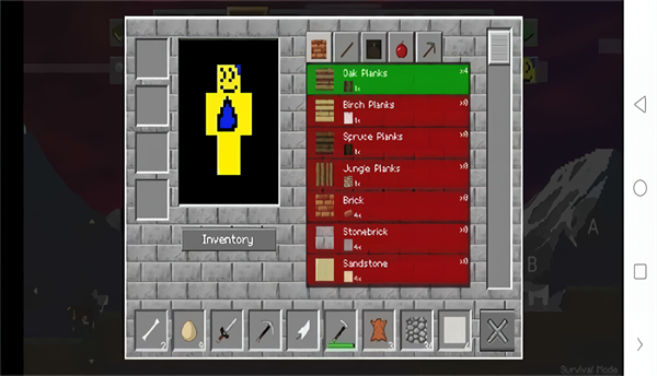 进入该模式中玩家在开始时没有任何道具可供使用,你想探索这个世界,在探索中收集各种资源制作工具,不但提高自己的等级,保持自己体力和生命值
