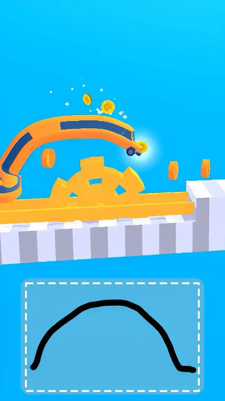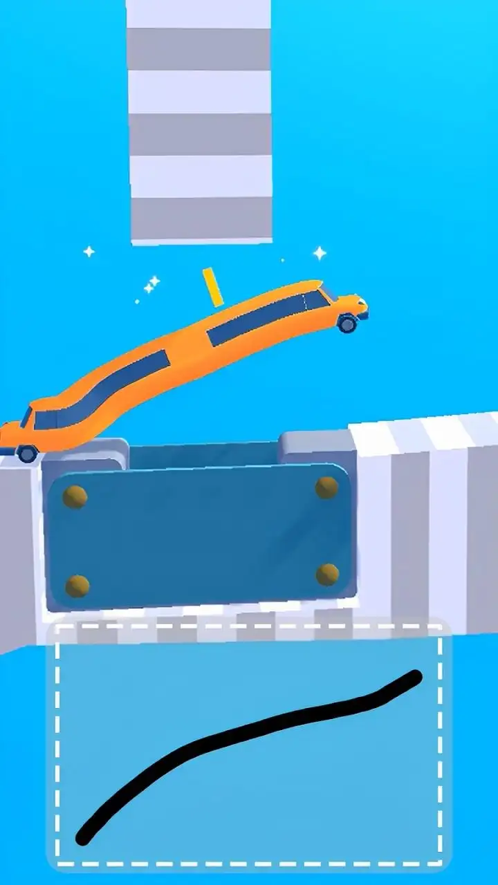 1、屏幕下方设有绘画区域,玩家可自由画出线条,这些线条会实时转化为汽车的车身、轮轴或支架;