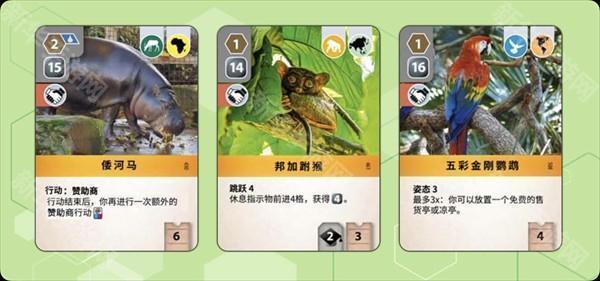 卡牌卡:抽取动物、赞助商及保护项目相关卡牌,扩展战略选项。