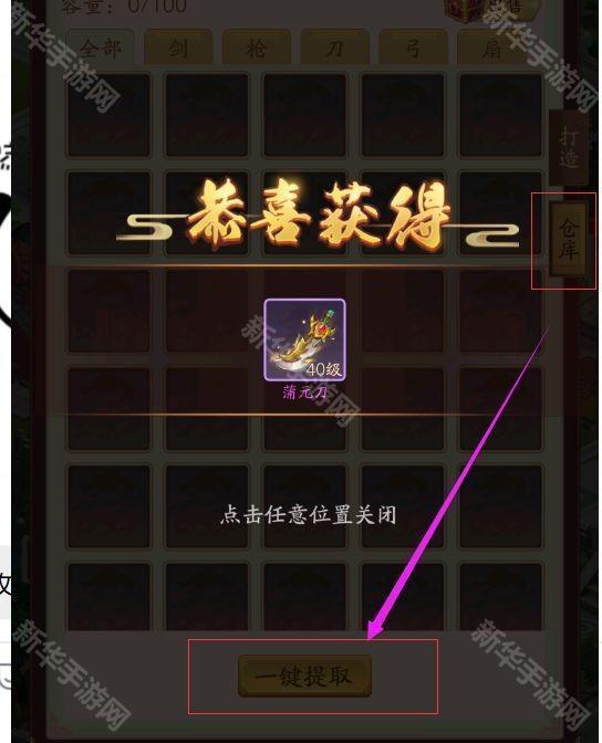 营地中“铁匠铺”“防具铺”打造所得装备均在该商品的仓库内,需要提取出来后,才会到背包中。