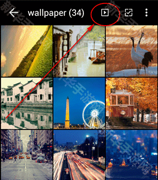 2、可以在相册中看到当前相册中的图片缩微图,点击右上角的【幻灯片播放】按钮可以以幻灯片的形式自动播放相册中的图片。