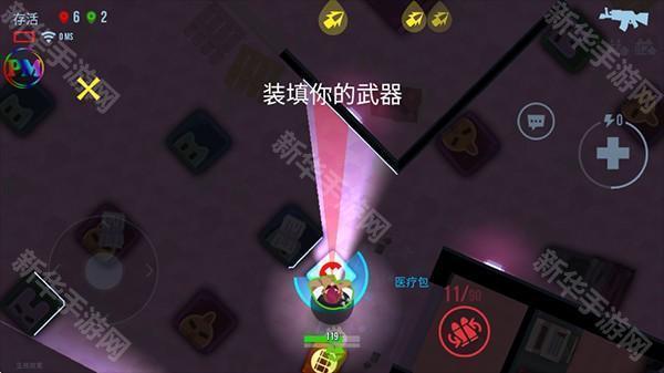 游戏采用俯瞰式上帝视角,左手摇杆控制角色移动,右手按键完成换弹、治疗等操作。操作相对简单,适合新手。