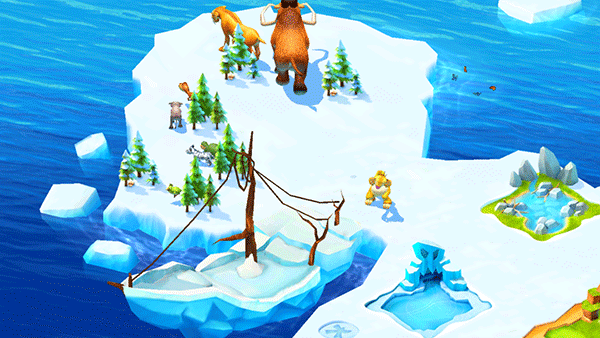 3、电影般的体验,独特的剧情外加希德、曼尼和迭哥的官方配音, 精致的3D美术让你仿佛置身于真正的冰川时代, 与《冰川时代》官方授权角色倾情互动。