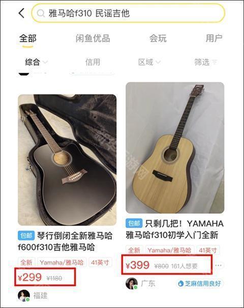(2)搜索宝贝的关键词,以“雅马哈f310型号的民谣吉他”为例,去看看差不多型号成色的宝贝别人卖多少钱,然后基于这个信息参考定价,可以预留10%左右的砍价空间。