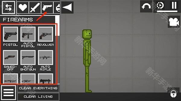 3、接着,我们在菜单界面,选择【枪】图标,选择一把拖动到地面上,