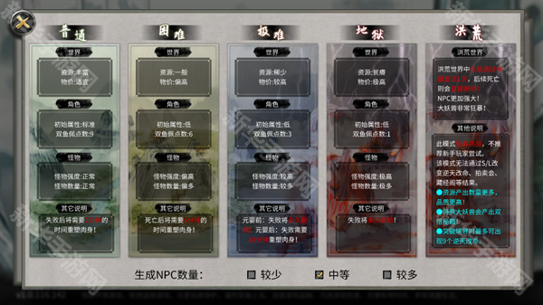 2、游戏开局难度分为普通、困难、极难、地狱、洪荒等等;