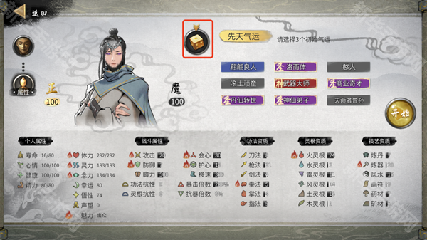 3、之后就是大家所期待的捏人环节了,游戏包含了性格以及和资质,你可以通过骰子进行重制;