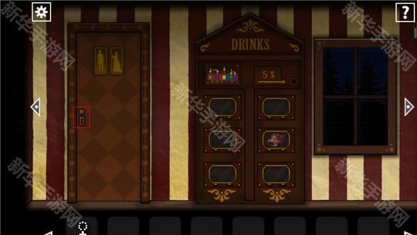 现在进入这个房间当中,在这个后面的柜子上面有一个机关,这个柜子机关的提示是最外面售票员的位置使用在厕所当中找到的镜片划开右边墙上的海报。如图进行调整,在这里还是一个翻牌游戏,将这九个按钮从1到9进行标记,根据顺序点击8938963979,这样整个机关就可以打开了。