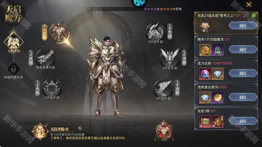 4、天启魔方开启一定程度后可以解锁天启圣衣时装以及解锁大量奖励。