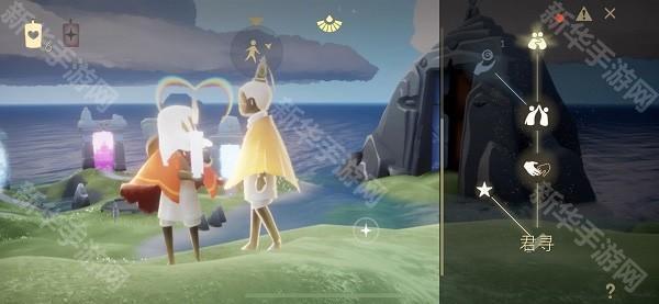找到石碑前的人影可以打开先祖商店。在先祖商店中我们可以用蜡烛解锁姿势或祝福,用爱心购买新的装扮,还可以购买乐器与好友合奏。