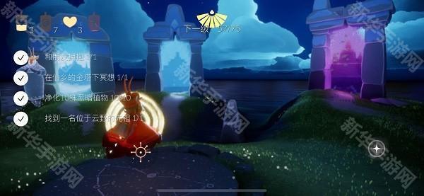 找到黄色人影,与它们互动 收集“光之翼”,我们的 飞行技能就可以得到 升级――斗篷背后 星星的数量就代表我们的飞行级别。