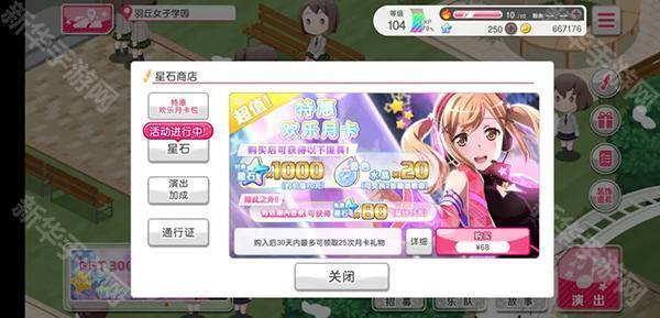 购买后立即获得付费星石1000与音色水晶(可在用来购买歌曲)20,并可以在30天的有效期内领取最多25次免费星石80。