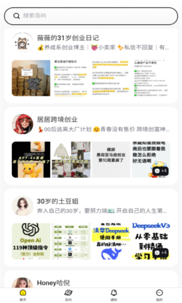 1.进入岛屿后你可以查看岛屿内发布的内容