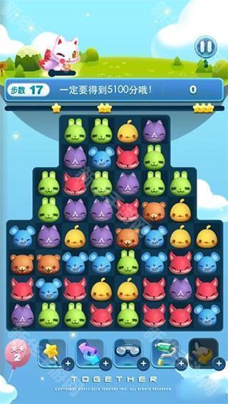 游戏的玩法和原版的开心消消乐相同,玩家需要将三个相同的动物连在一起,即可进行消除,而且通关之后还能获得红包奖励,难度会随着时间越来越高,但玩法也非常的可爱。