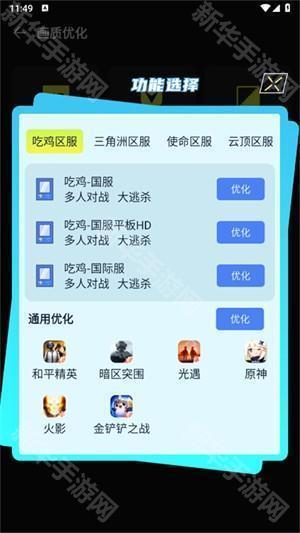 4、任意选择一个功能进入,然后再选择游戏区服,点击优化