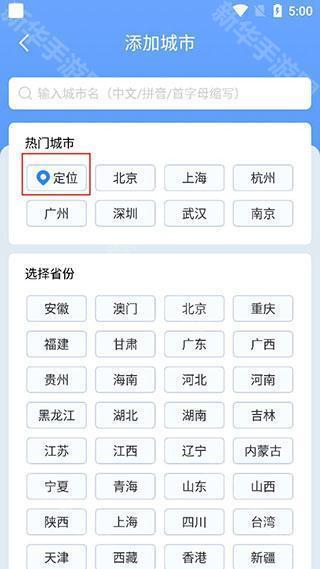 3、在这里可以选择在直接定位所在城市,也可手动添加自己感兴趣的城市。